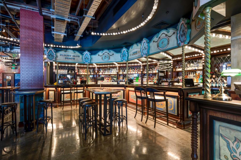 Flight Club Perth, home of Social Darts, has revolutionized the traditional game of darts for the 21st century by bringing groups together with fast-paced, multi-player games. The two-storey bar has a fun 1800s British fairground aesthetic—think vintage wallpaper, a merry-go-round horse, retro amusement park lighting and art pieces curated from UK flea markets.