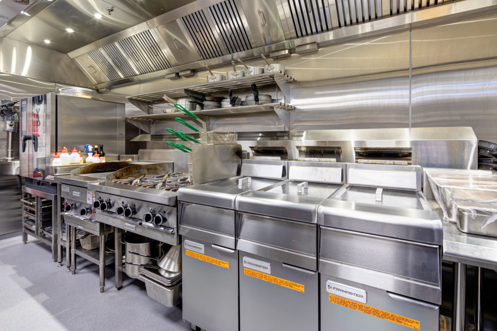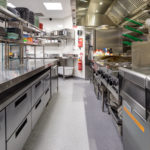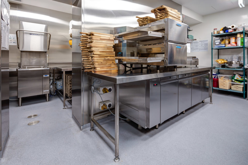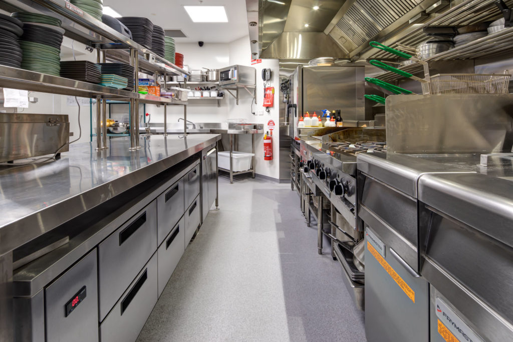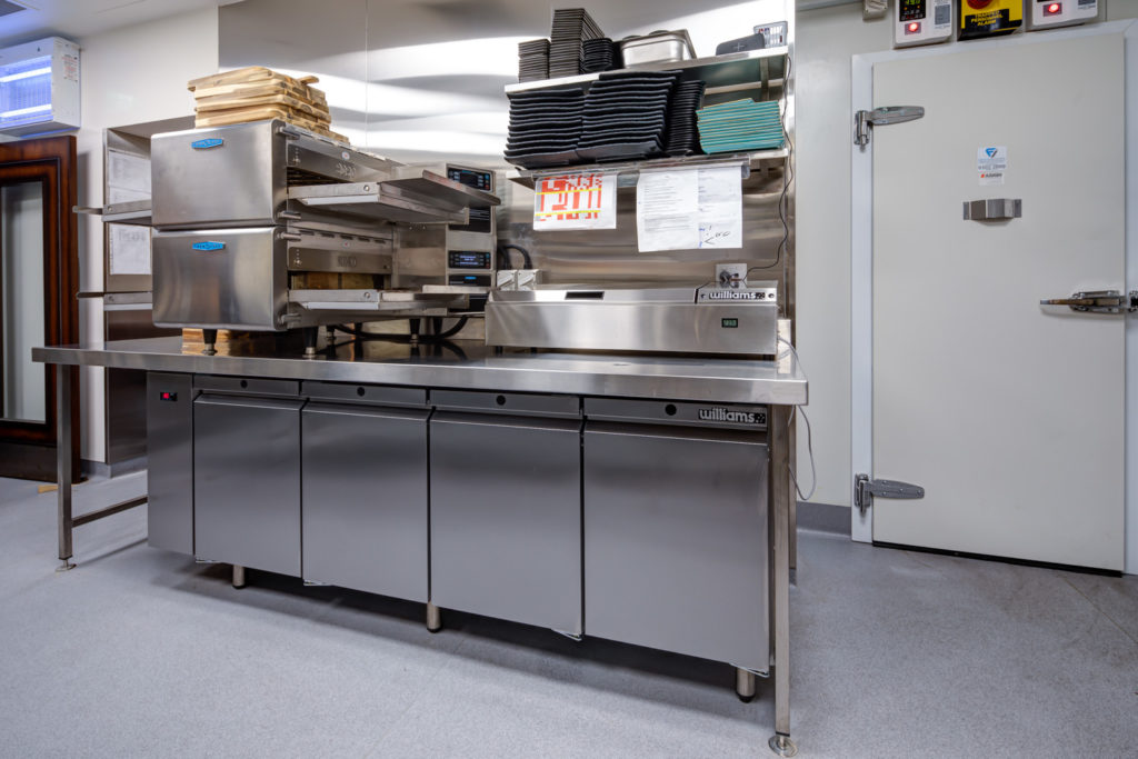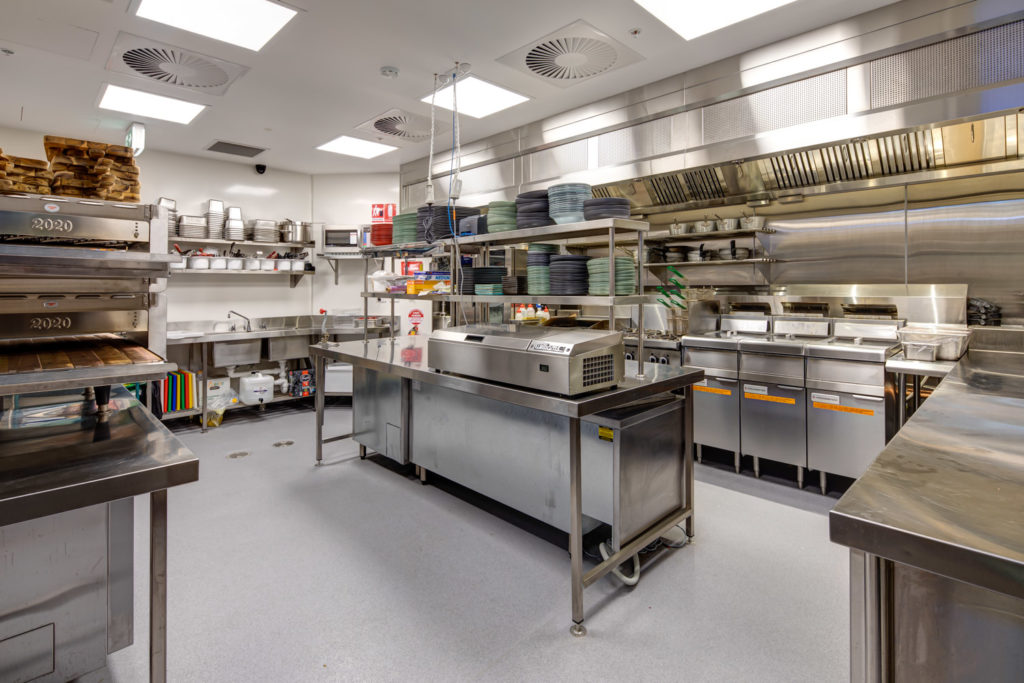 - Level 1 Restaurant Kitchen has a cookline with Garland and Rational equipment with custom made stainless steel benches.