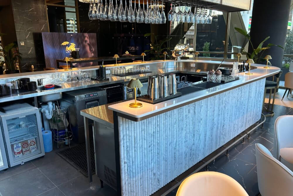 Caterlink was proud to be appointed to this landmark project through a competitive tender process. With a tight construction timeline and last-minute equipment adjustments, the project demanded sharp coordination and responsive solutions, which our team was well equipped to deliver. Caterlink’s scope included project management, equipment supply and installation across the Ground Floor Bar, as well as the Bar on the 38th Floor Skybar.