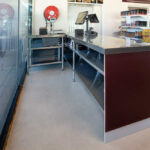 The bar construction process involved the use of high-quality Simply Stainless modular stainless steel benches and custom-fabricated benches that not only provided durability and longevity but also resulted in significant cost and time savings for the customer. Additionally, the skilled team at Caterlink selected and incorporated reputable brands – such as Skope Refrigeration, Vitamix Blenders, Anvil Food Display Cabinets, and a Turbofan connection oven – into the design, resulting in a functional workspace that is both aesthetically pleasing and highly efficient in meeting the needs of their clients.