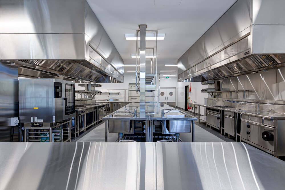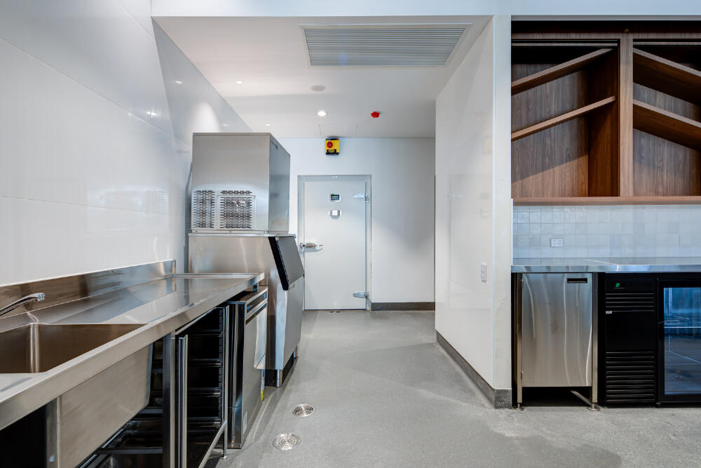 Caterlink was contracted to offer kitchen planning services including specification and design. Our team also facilitated project management, supplied equipment, and installed all fabricated stainless and modular Simply Stainless steel, kitchen and bar equipment, and Coolrooms. We placed high-performing, fit for purpose, appliances such as Waldorf floor standing cooking equipment, Convotherm Combi ovens, Turbofan Convection Ovens, Skope refrigeration, ITV Ice machines, Friginox Blast chiller/ Freezers, Meiko dishwashing, Robot Coupe planetary mixers and Metro Max Q shelving. Exhaust hoods were supplied by AOM and installed by our team – ensuring that we have the latest exhaust solution for a comfortable environment to work in.