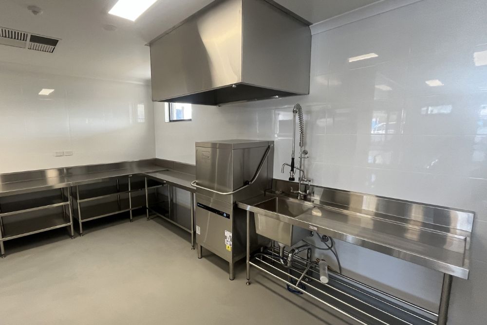 To ensure functionality and cost-effectiveness, we incorporated Simply Stainless modular components topped with custom stainless steel benchtops. The back-of-house area was fitted with Caterlink wire shelving and modular Simply Stainless benching solutions.