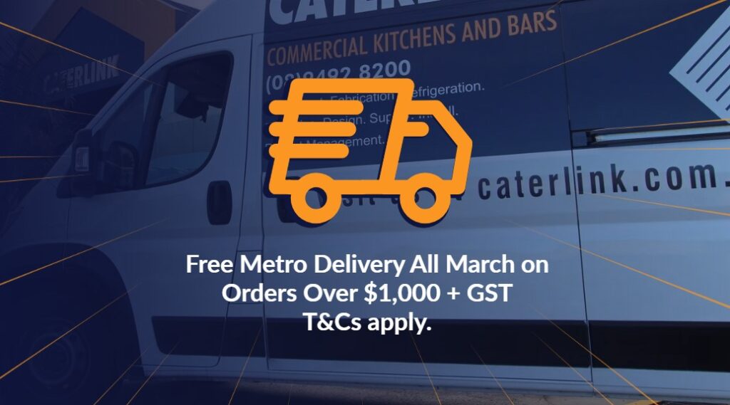 Free kerbside delivery within Perth Metro and Melbourne Metro, as per Caterlink’s metro definitions*, is available on all purchases over $1,000 + GST and is subject to Caterlink’s delivery schedule.