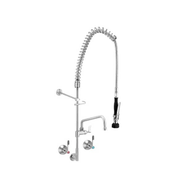 3 Monkeez Clean-A-Jet Stainless Steel Wall Top Assembly and Elbow Pre Rinse Unit with 12″ Pot Filler.