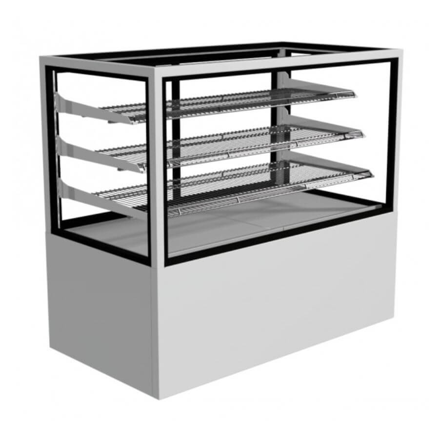 Aged Festive Regent Series 1200mm, 4 Tier Square Glass Free Standing Chilled Food Display. Finished in Stainless Steel. (10A) **Ex Showroom Display – Full MF Warranty**