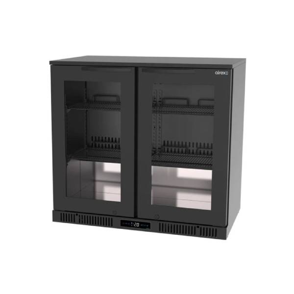 Airex Two Glass Door, 196Lt Undercounter Back Bar Fridge. Finished in Black. (10A)