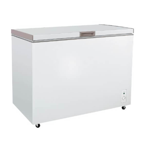 Atosa 155Lt Storage Chest Freezer, Solid Stainless Steel Lid and White Base on Castors.