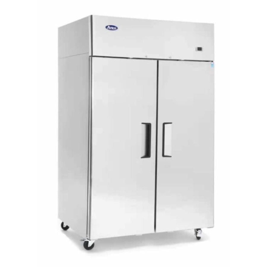 Atosa YBF Series Two Solid Door, 900Lt Upright Fridge with Top Mount Motor. Finished in Stainless Steel.