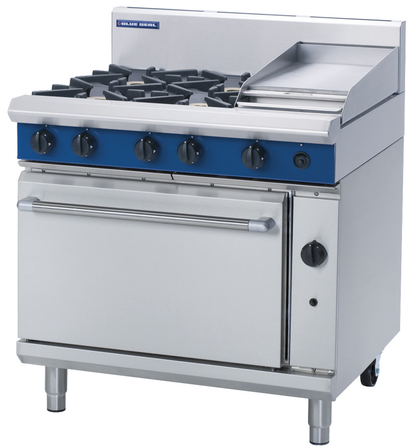 Blue Seal Black Series G506C Gas Combination 4 Burner and 300mm Griddle on 2/1 GN Static Oven. (LPG Gas)