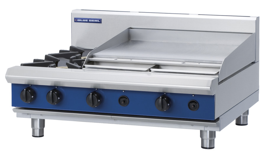 Blue Seal Black Series 900mm Modular Gas Benchtop Combination 2 Burner Cooktop with 600mm Griddle. (NAT Gas)