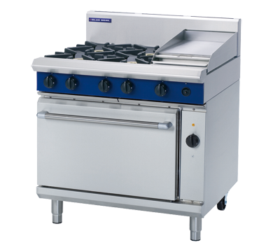 Blue Seal Black Series 900mm Modular Gas Range Combination 4 Burner Cooktop and 300mm Griddle on 2/1 GN Electric Convection Oven. (NAT Gas)