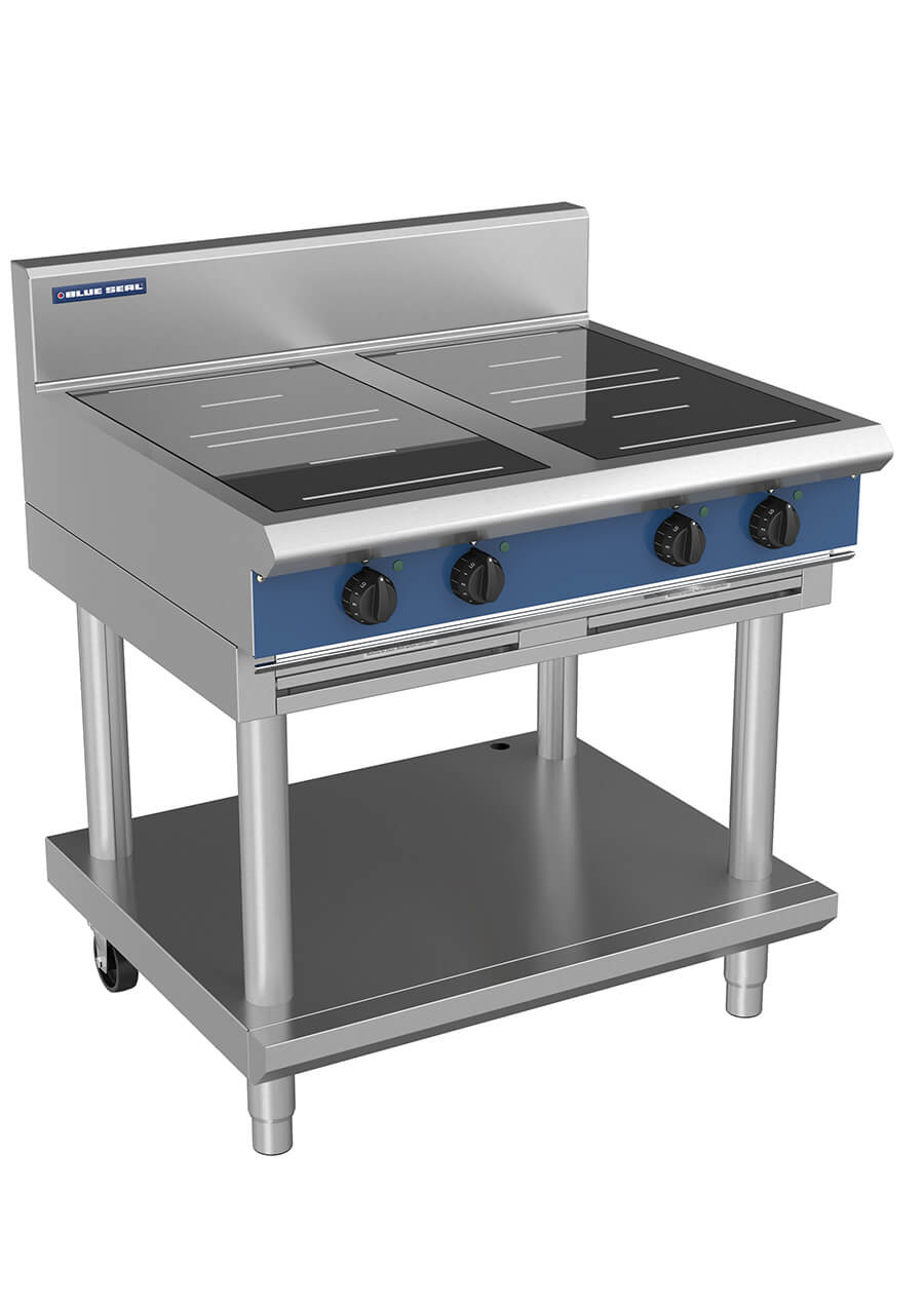 Blue Seal Evolution Series 900mm 4 x 5kW Round Zone Electric Induction Cooktop on Leg Stand. (3P)