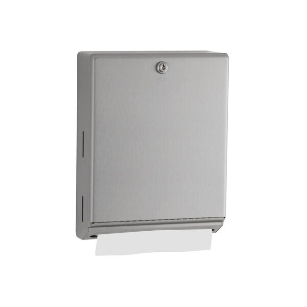 Bobrick Classic Series Vertical Surface Mounted Paper Towel Dispenser. Finished in Satin Stainless