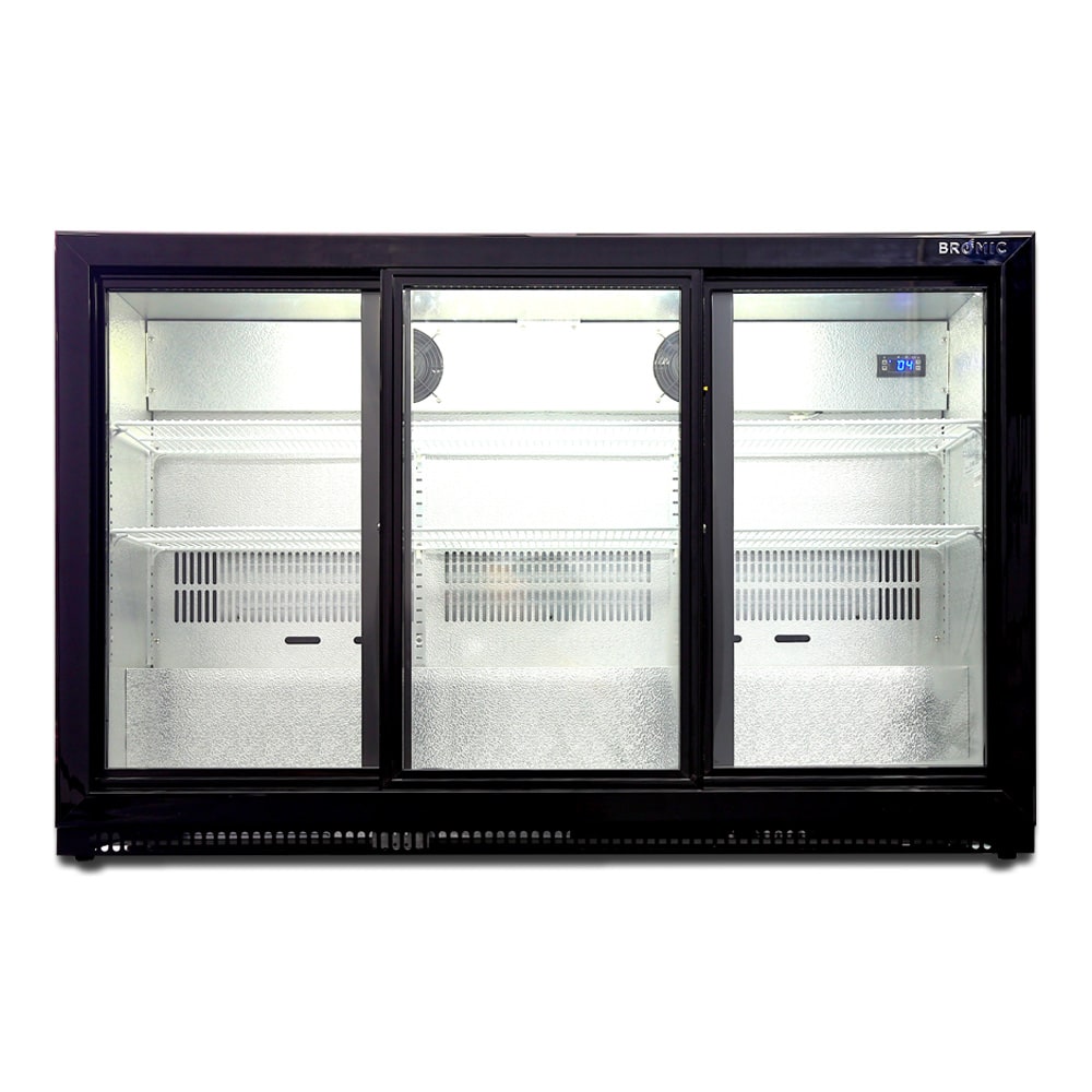Bromic Three Glass Sliding Doors, 307Lt Back Bar Display Fridge. Finished in Black. (10A)