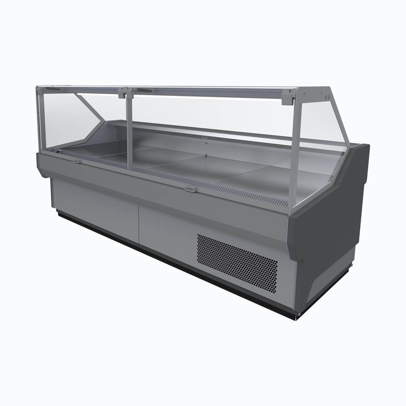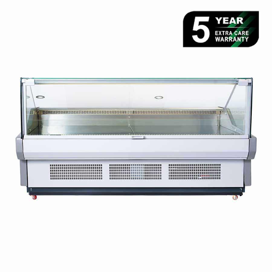 Bromic Square Cold Deli Display 703Lt, Lift up Front Glass, LED Lighting, Convenient Rear Bench Space and Lower Level Storage. Grey Finish on Castors. (10A)