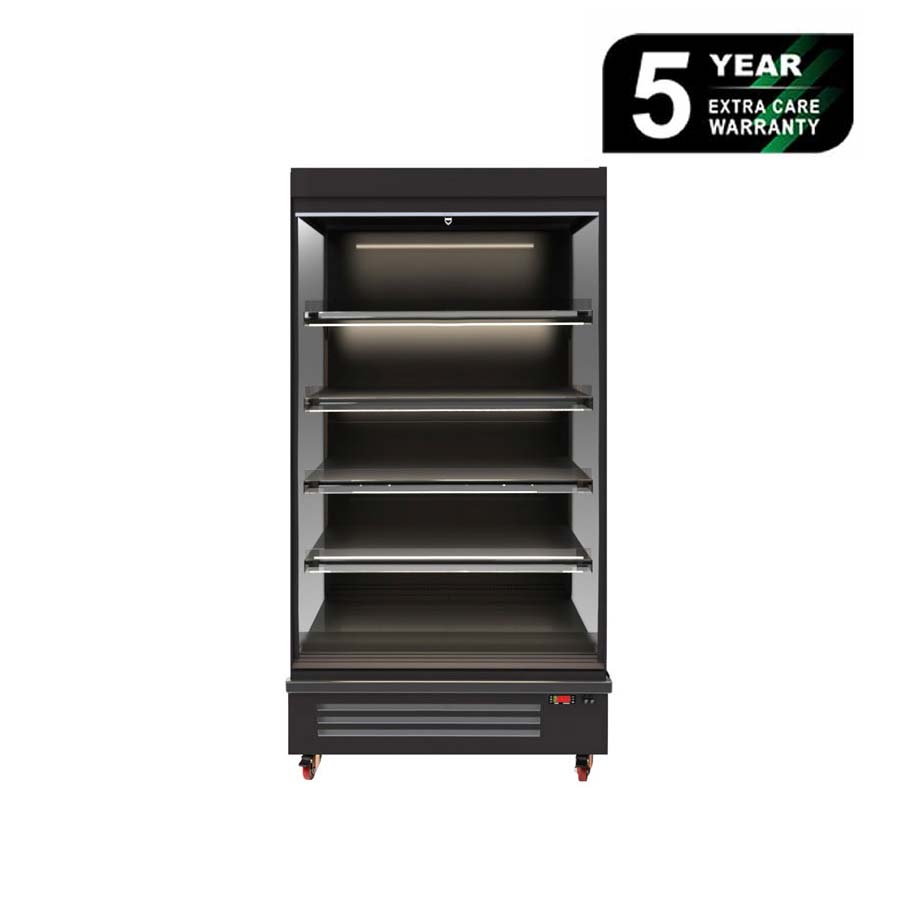 Bromic 938mm 611Lt Full Height Open Vertical Multideck Display Fridge. Finished in Black. (10A)