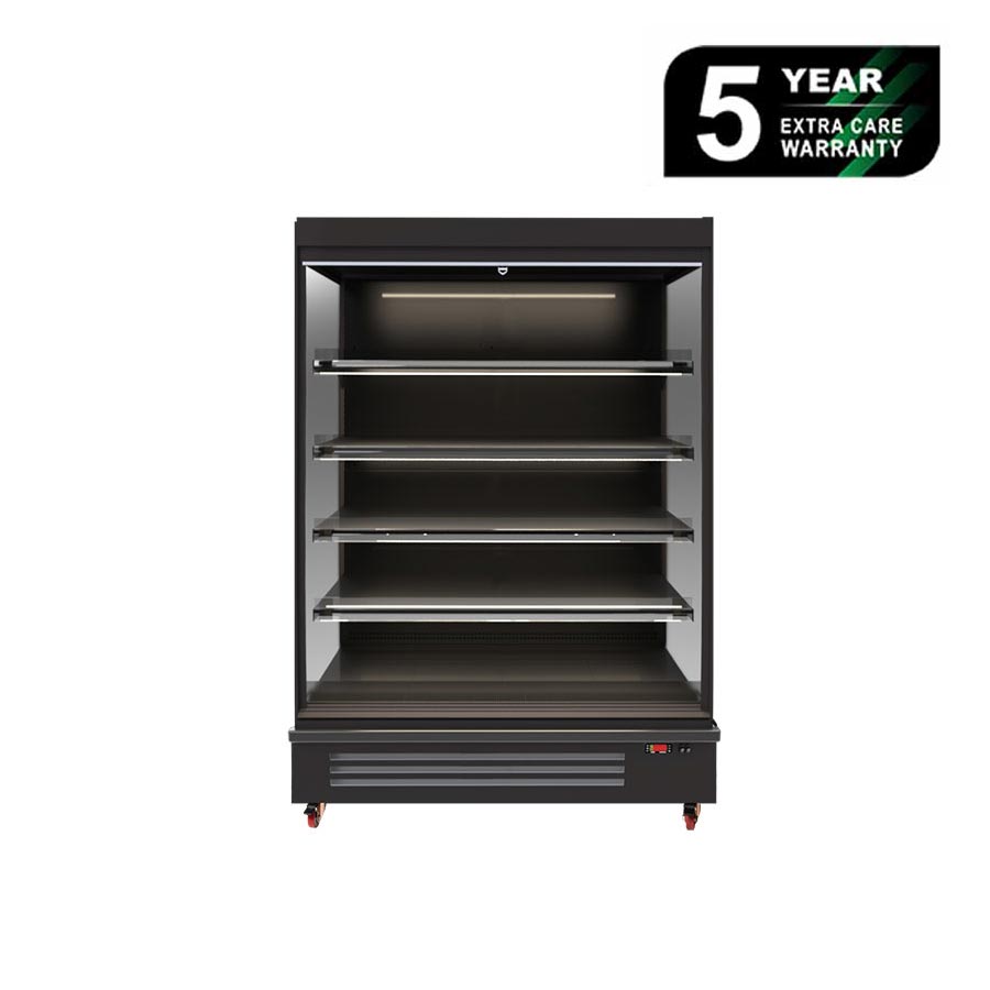 Bromic 1250mm 814Lt Full Height Open Vertical Multideck Display Fridge. Finished in Black. (10A)