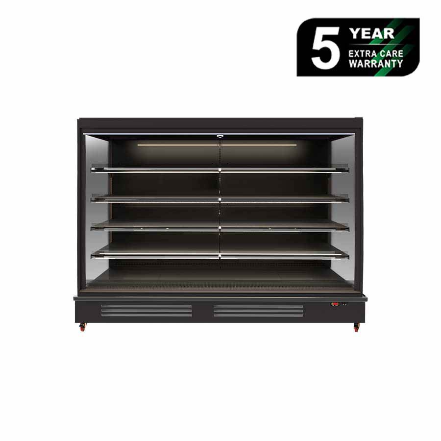 Bromic 2500mm 1629Lt Full Height Open Vertical Multideck Display Fridge. Finished in Black. (10A)