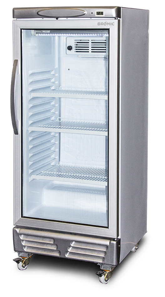 Bromic GM Series Single Glass Flat Door, 215Lt Vertical Display Fridge. Finished in Silver. (10A).