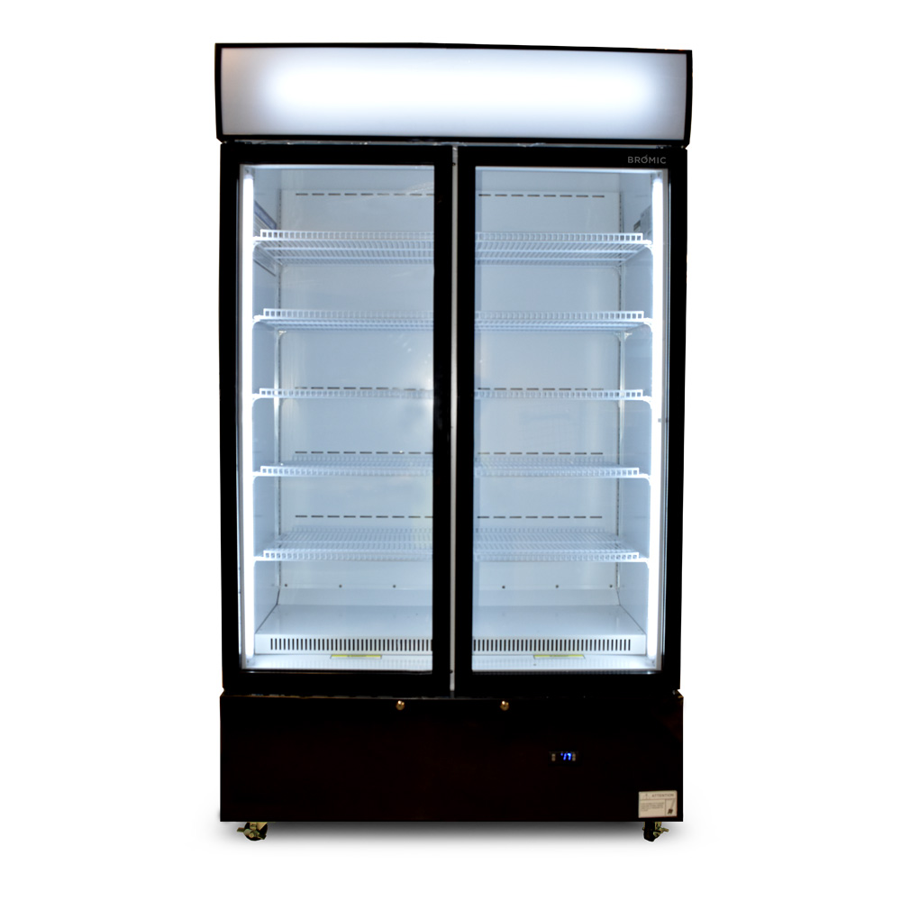 Bromic GM Series 2 door Vertical Display Fridge, 960lt with Removable Casette Bottom Motor and Lightbox. Finished in Black. (10A)