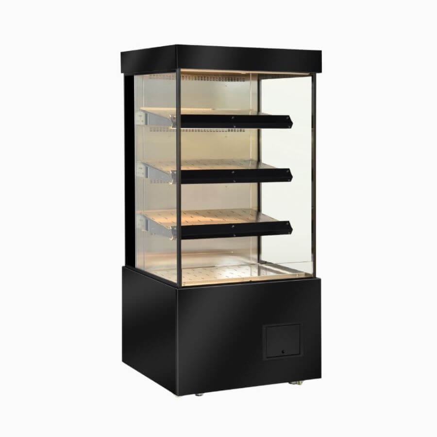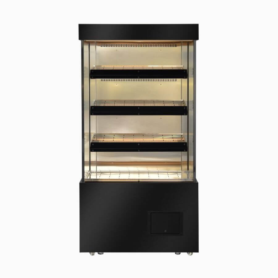 Bromic 1000mm 500Lt Full Height Open Hot Vertical Multideck Display. Finished in Black. (10A)