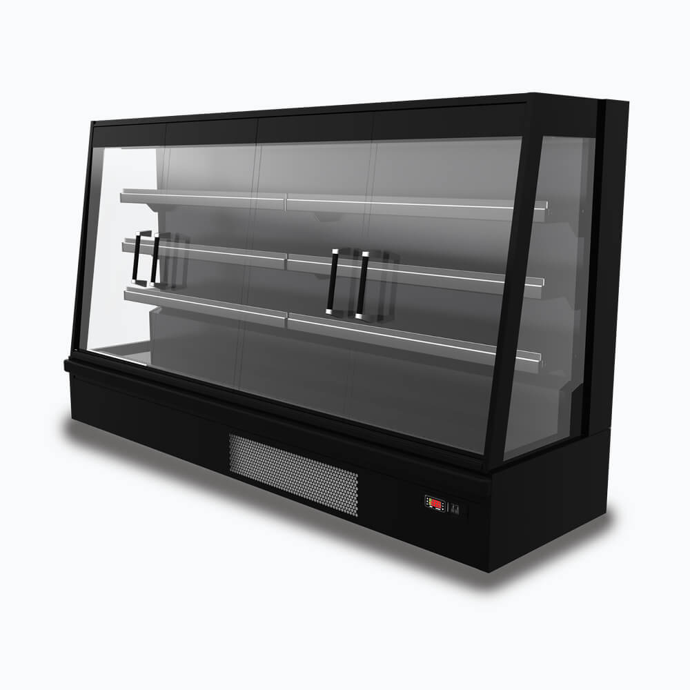 Bromic Two Sliding Doors, 1580mm, 559Lt Semi Vertical Multideck Display Fridge. Finished in Black. (10A)