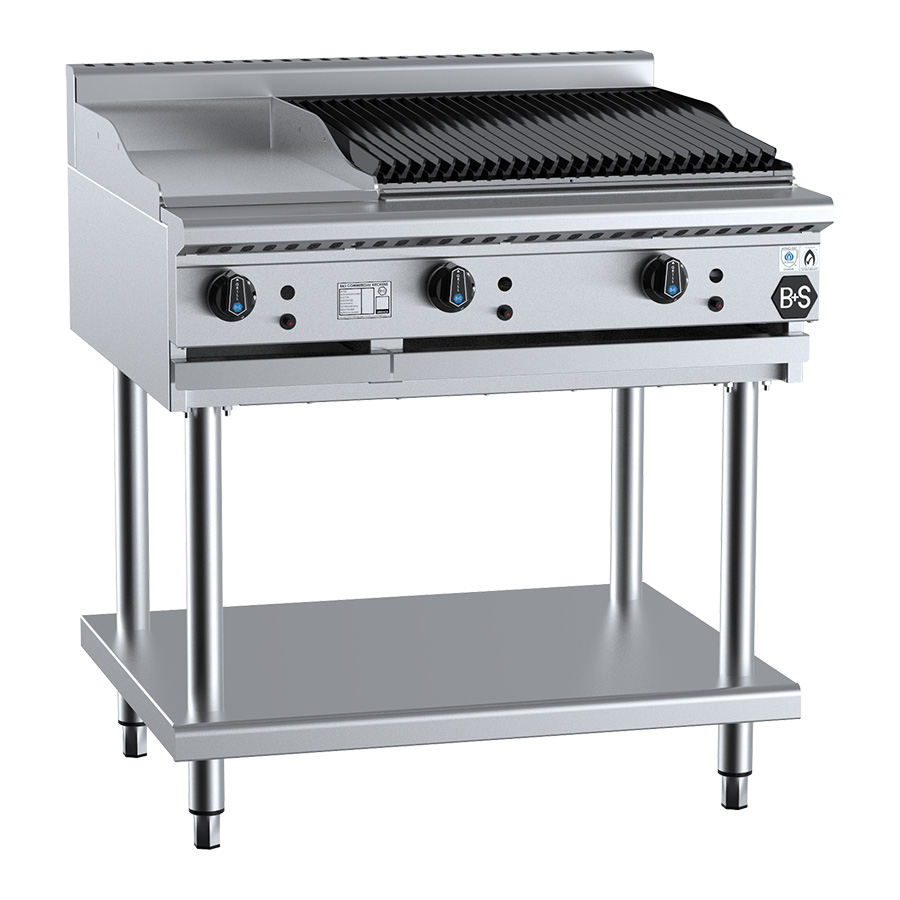 B&S Black Series Gas Combination 300mm Grill Plate and 600mm Char Broiler on Stand. (LPG Gas)