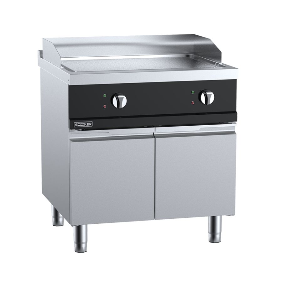 B&S Scooker Series 800mm Smooth Plate Electric Griddle. Finished in Stainless Steel.
