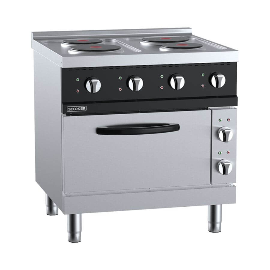 B&S Scooker Series Solid Plate Four-Zone Electric Boiling Top With Oven. Finished in Stainless Steel.