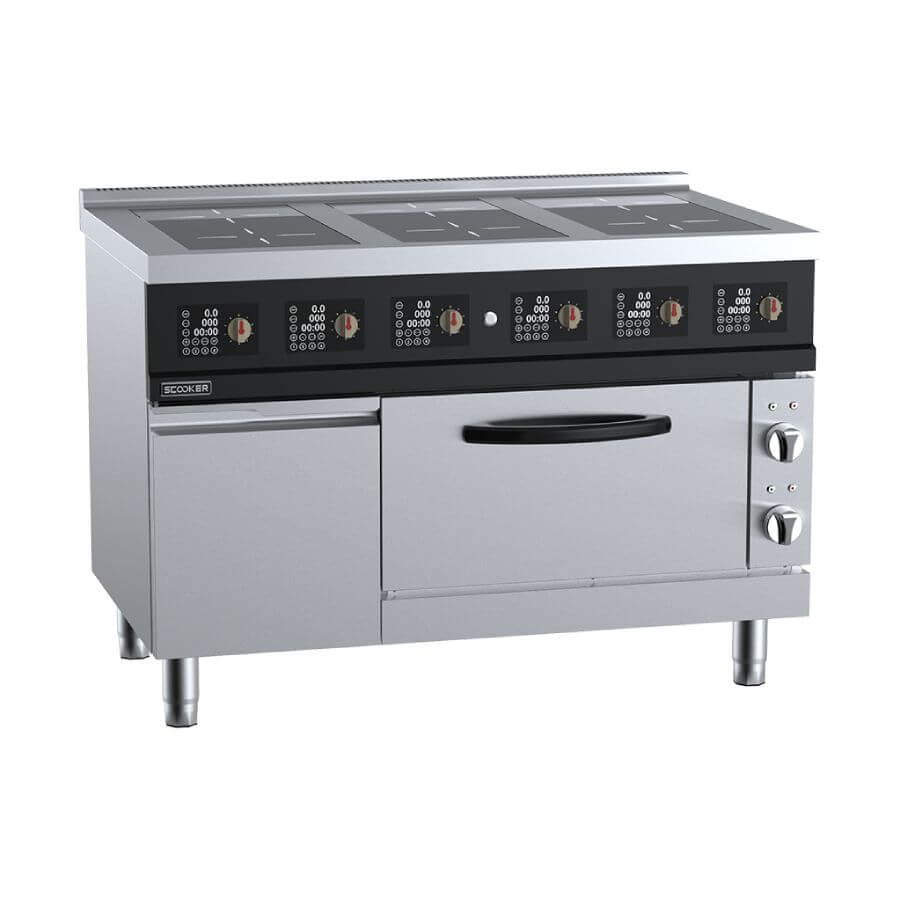 B&S Scooker Series Full Length Glass Six-Zone Induction Boiling Top with Oven. Finished in Stainless Steel.