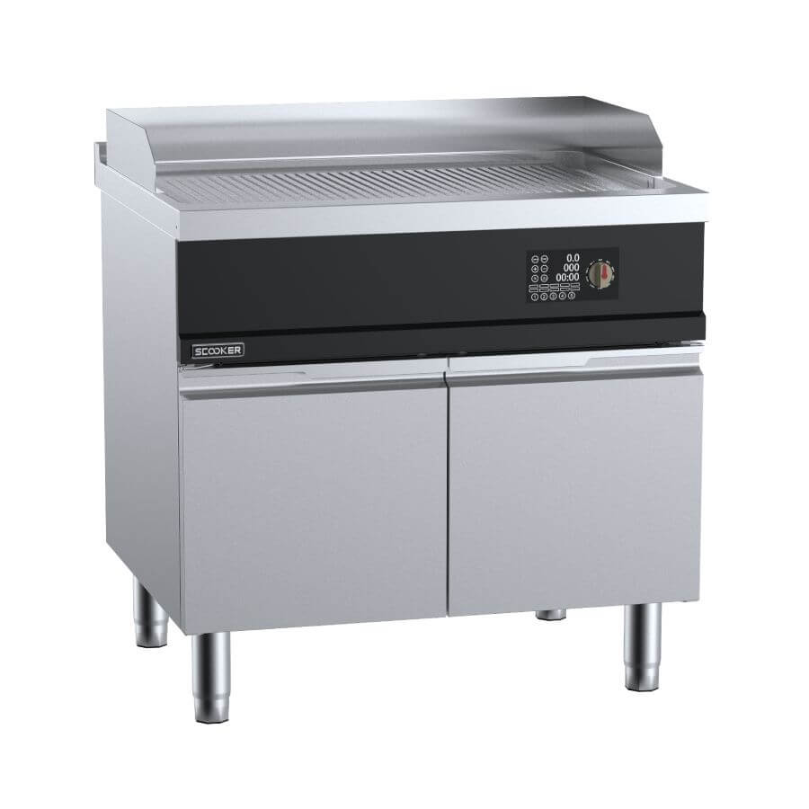 B&S Scooker Series 1200mm Grooved Plate Induction Griddle. Finished in Stainless Steel.