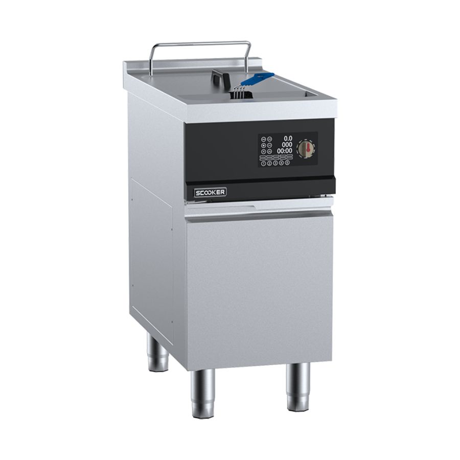 B&S Scooker Series Single Pan Two Basket Fryer Induction. Finished in Stainless Steel