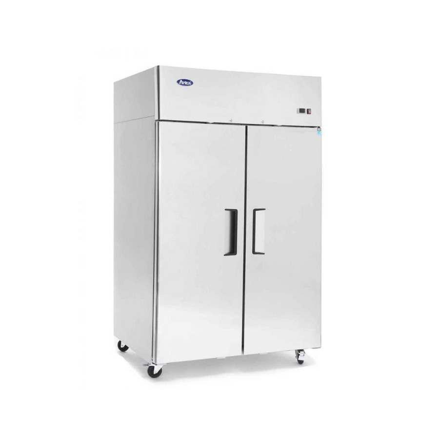 Clearance Atosa 2 Solid Door Vertical Chiller with Top Mount Motor. Finished in Stainless Steel. *Full MF wty – ding on L/H door*