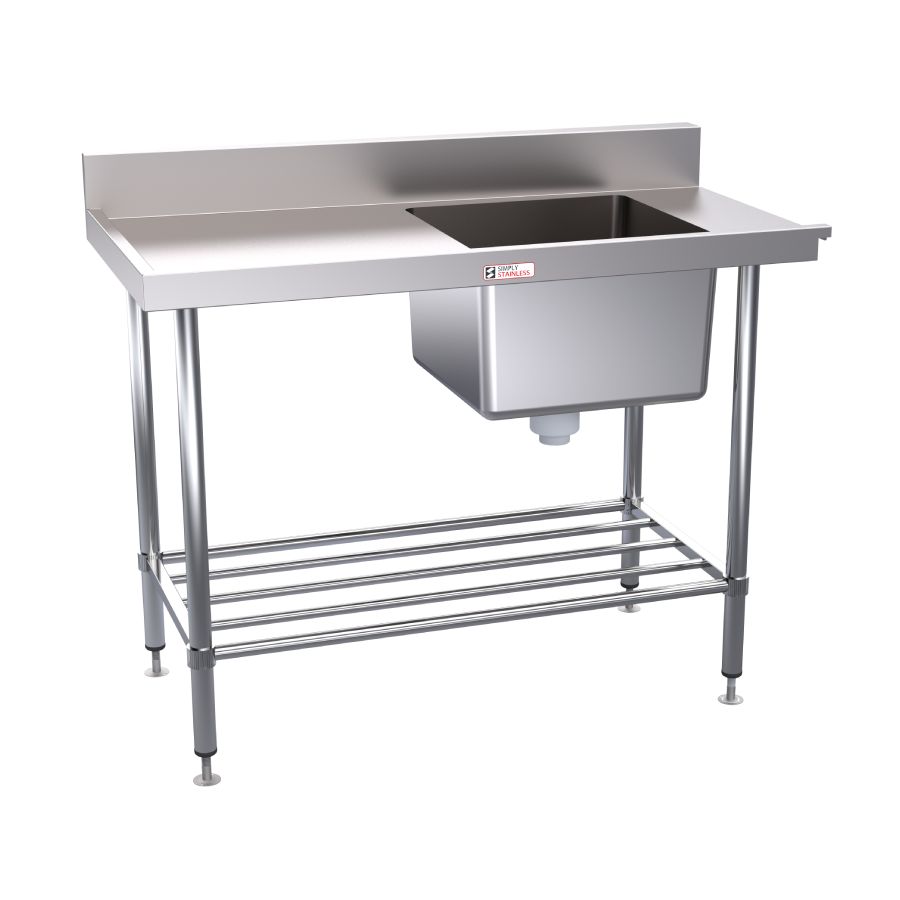 Clearance Simply Stainless 600 Series Modular 1200mm Left Hand Dishwasher Inlet Bench with Splashback, Sink and Undershelf. ** Brand New, Assembled, Tap Hold Punched, Full MF Warranty**