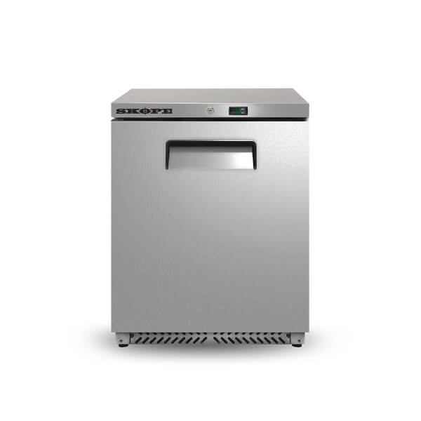 Clearance / Seconds Skope Reflex Single Door Self Contained Undercounter Chiller 129Lt, Base with 2 Adjustable Shelves. Solid Door Finished in Stainless Steel. (10A) **Sold As Is**