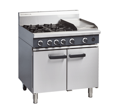 Cobra 900mm Modular Gas Range with Combination 4 Burner and 300mm Griddle on Static Oven with Flame Failure. (LPG Gas)