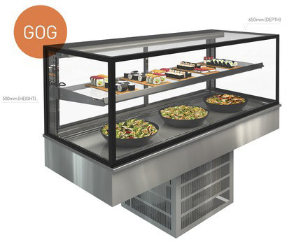 Cossiga Tower Counter GOG Series 1500mm Countertop Square Glass Refrigerated Food Display with Rear Sliding Doors. (10A)