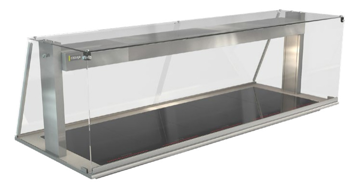 Cossiga Linear Series 6 x 1/1GN Ceramic Heated Display with Square Glass Assisted Service and Acrylic Rear Doors. (30A)