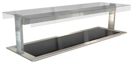 Cossiga Linear Series 6 x 1/1GN Ceramic Heated Glass Buffet Display with Flat Top Glass Sneeze Guard. (30A)