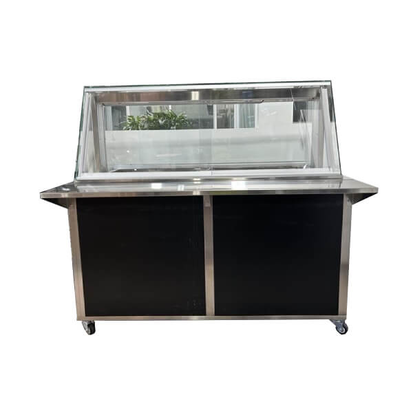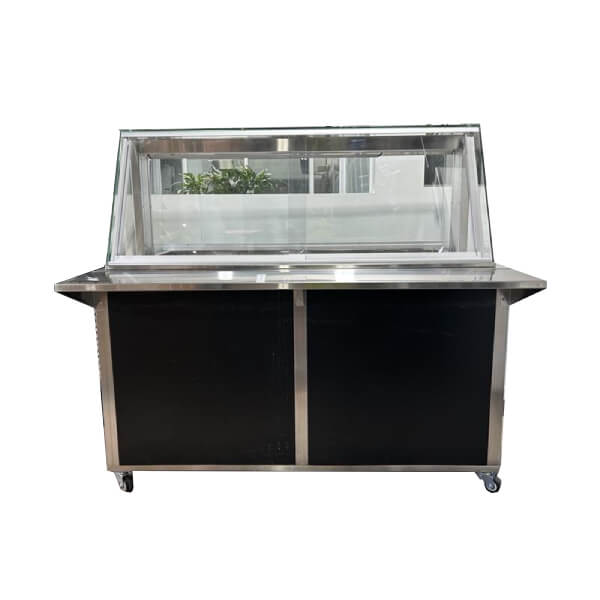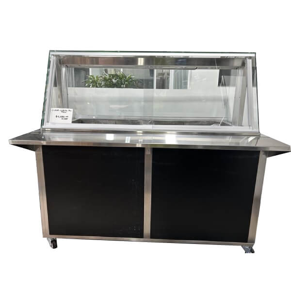 Cossiga Linear LS Series 4 x 1/1 GN Drop In Refrigerated Cold Well with Square Glass Assisted Service with Acrylic Rear Doors. Mounted On LSCK4 Trolley (10A) **Brand New – Full MF Warranty**