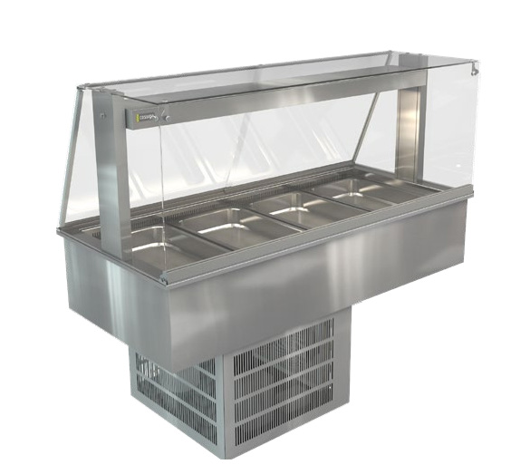 Cossiga Linear LS Series 4 x 1/1 GN Drop In Refrigerated Cold Well with Square Glass Assisted Service with Acrylic Rear Doors. (10A)