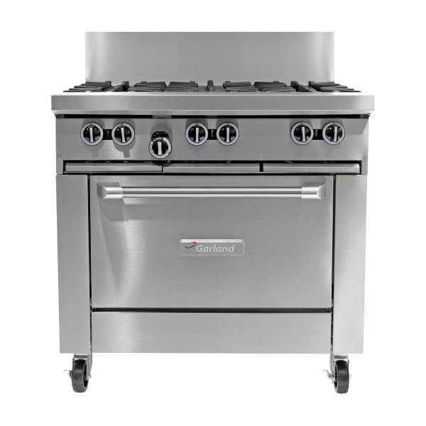 Garland GFE36-6C 900mm Wide Restaurant Series 6-Burner Range with Convection Oven.