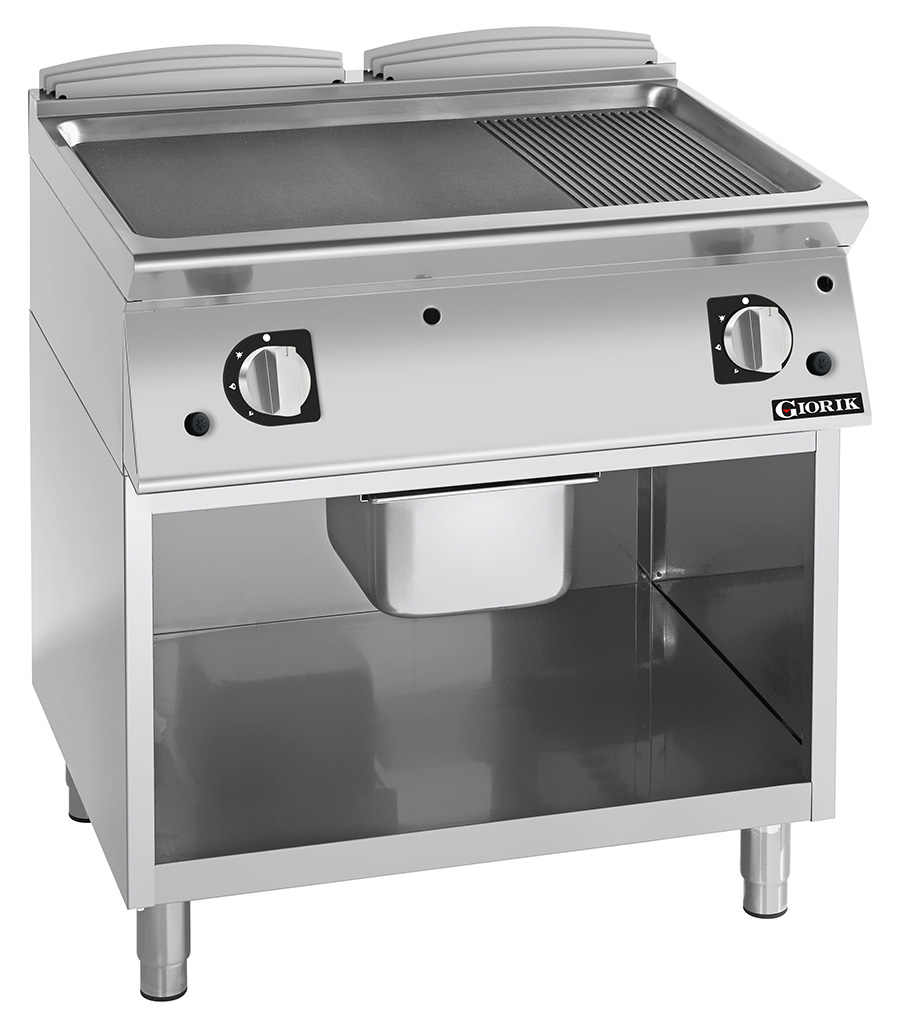 Giorik 700 Series 800mm Smooth/Ribbed Mild Steel Plate Gas Frytop/Griddle on Open Base (NAT Gas)