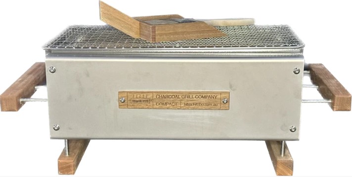 Hibachi Tabo Compact Charcoal Grill with Mesh Grill Top.