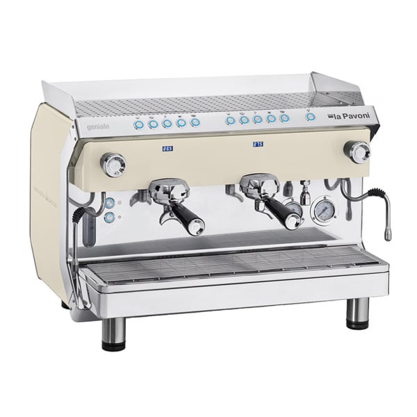 La Pavoni Geniale 2 Group Automatic Brewing Coffee Machine. Finished in Cream.
