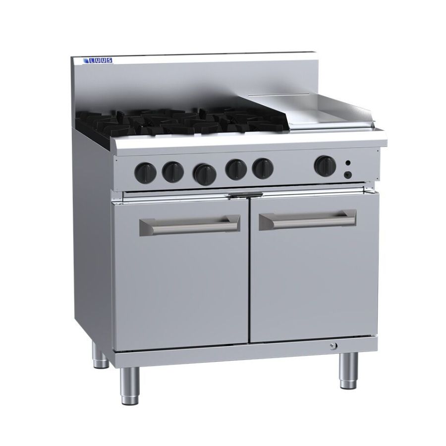 Luus RS Professional Series 900mm Gas Range Combination 4 Burner with 300mm Griddle Plate and Oven. (NAT Gas)