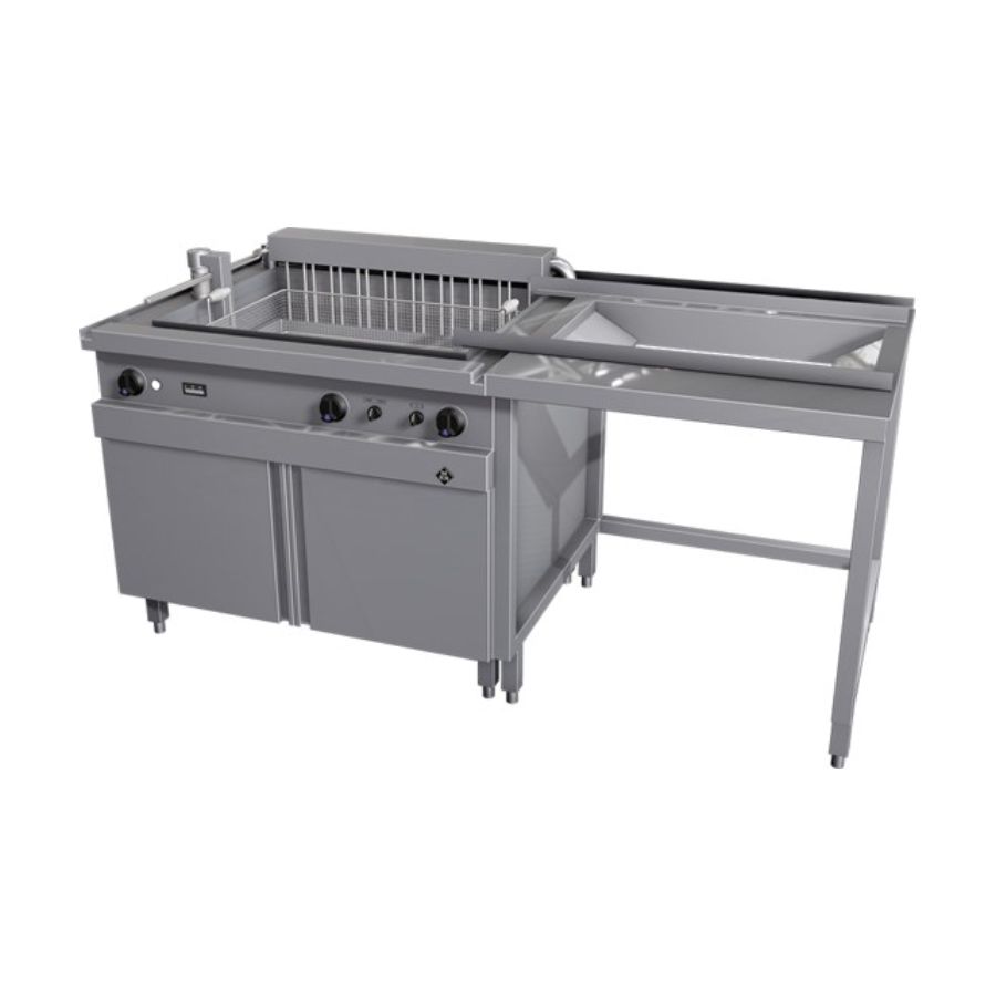 MKN Optima 850 Series 115Lt Electric Industrial Deep Fat Fryer with Lifting Device on the Left and Discharge System on the Right. (3P)