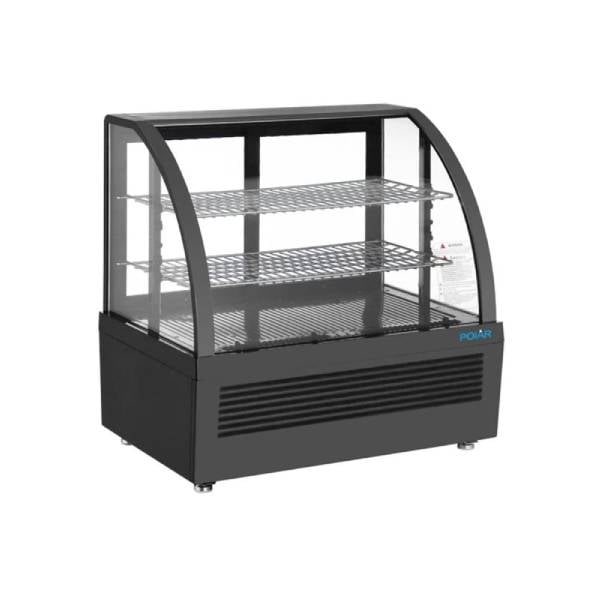 Polar 100Lt Countertop Cold Food Display with 2 Shelves and Base, Internal LED lighting. Black Finish Interior and Exterior.