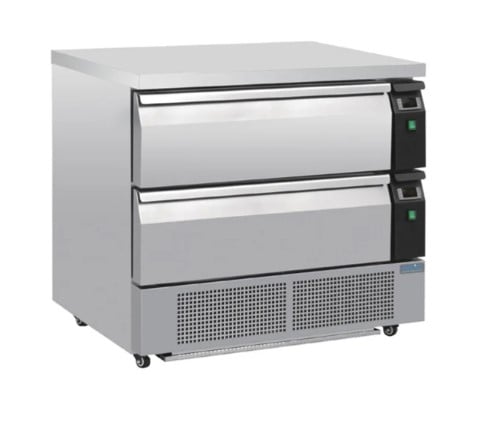Polar U Series 2 Drawer, Dual Temperature Counter Fridge OR Freezer with 4 x 1/1GN capacity. Stainless Steel Finish.