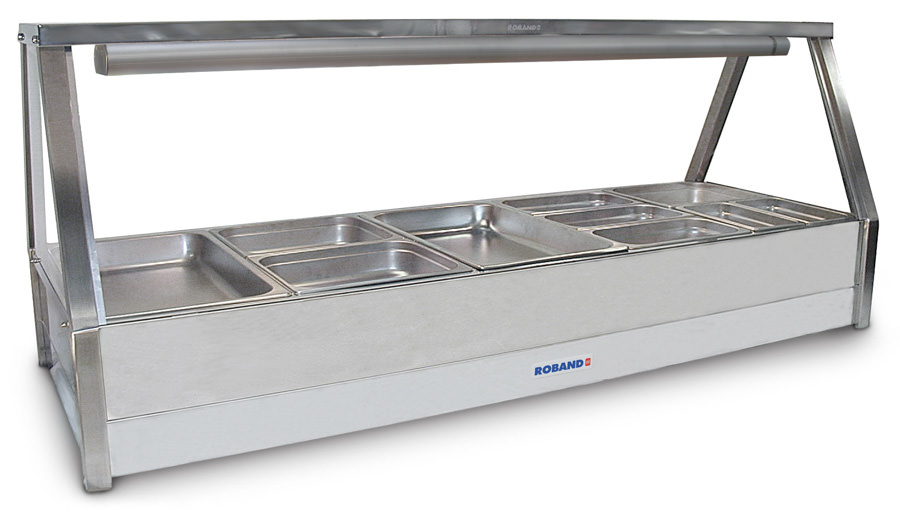 Roband E Series 5 Module Double Row Straight Glass Bain Marie with Rear Roller Doors. ** PANS INCLUDED**